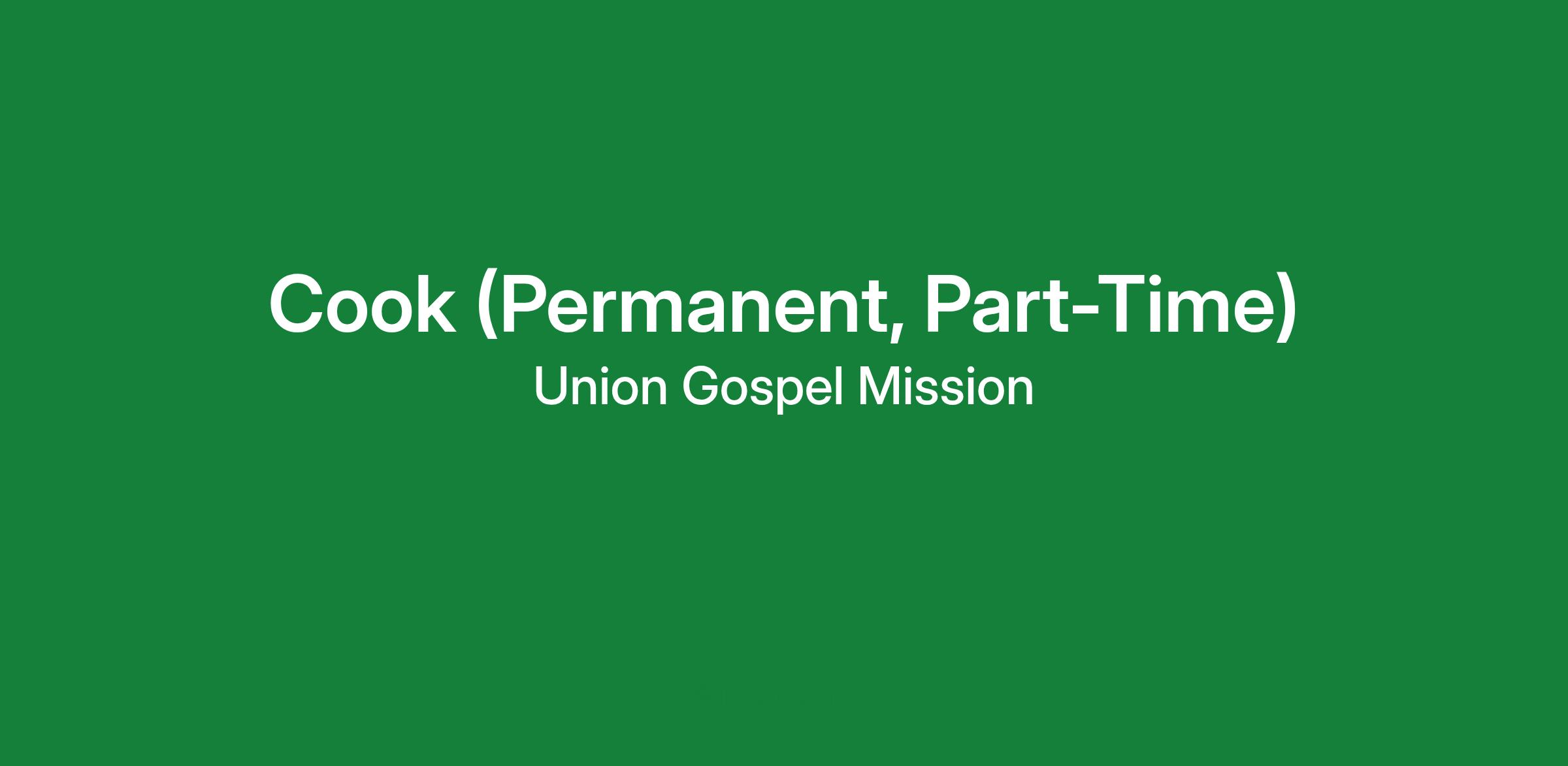 Join us at our Vancouver location as a Cook, where you'll plan and prepare daily meals and snacks that meet both municipal health regulations and the high standards of Union Gospel Mission. You'll work alongside wonderful, eager, and energetic volunteers every day. With a trauma-informed approach, you'll raise awareness about the role of food in health and recovery while collaborating with our Manager of Kitchen Services and participating in strategic planning to support the residents of the Downtown Eastside of Vancouver.