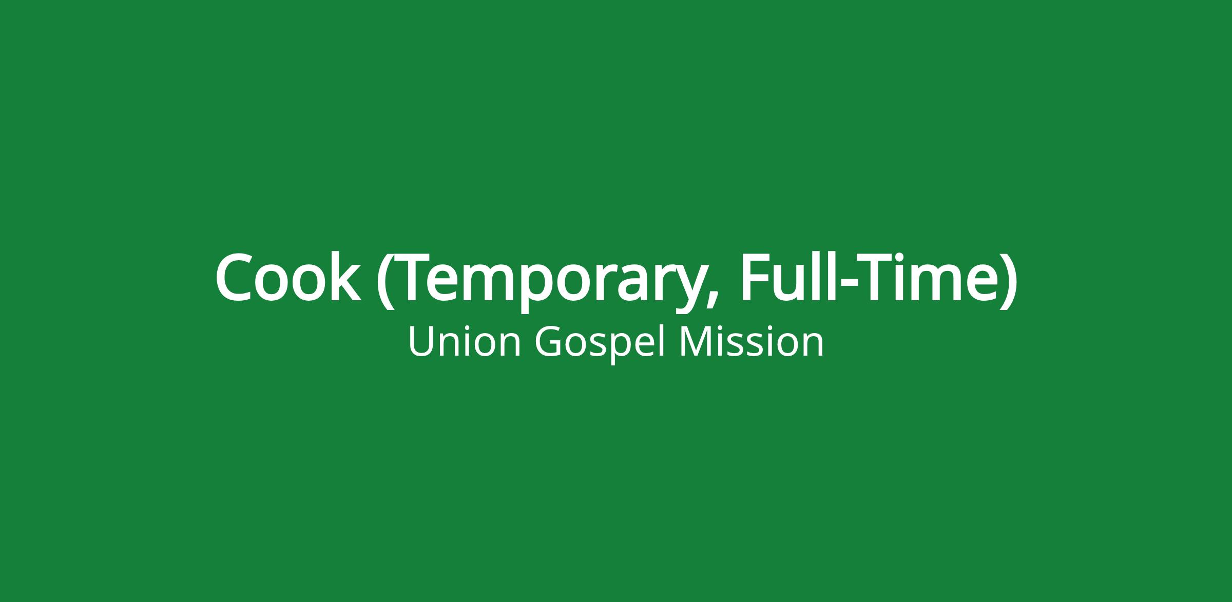 Join us at our Vancouver location as a Cook, where you'll plan and prepare daily meals and snacks that meet both municipal health regulations and the high standards of Union Gospel Mission. You'll work alongside wonderful, eager, and energetic volunteers every day. With a trauma-informed approach, you'll raise awareness about the role of food in health and recovery while collaborating with our Manager of Kitchen Services and participating in strategic planning to support the residents of the Downtown Eastside of Vancouver.