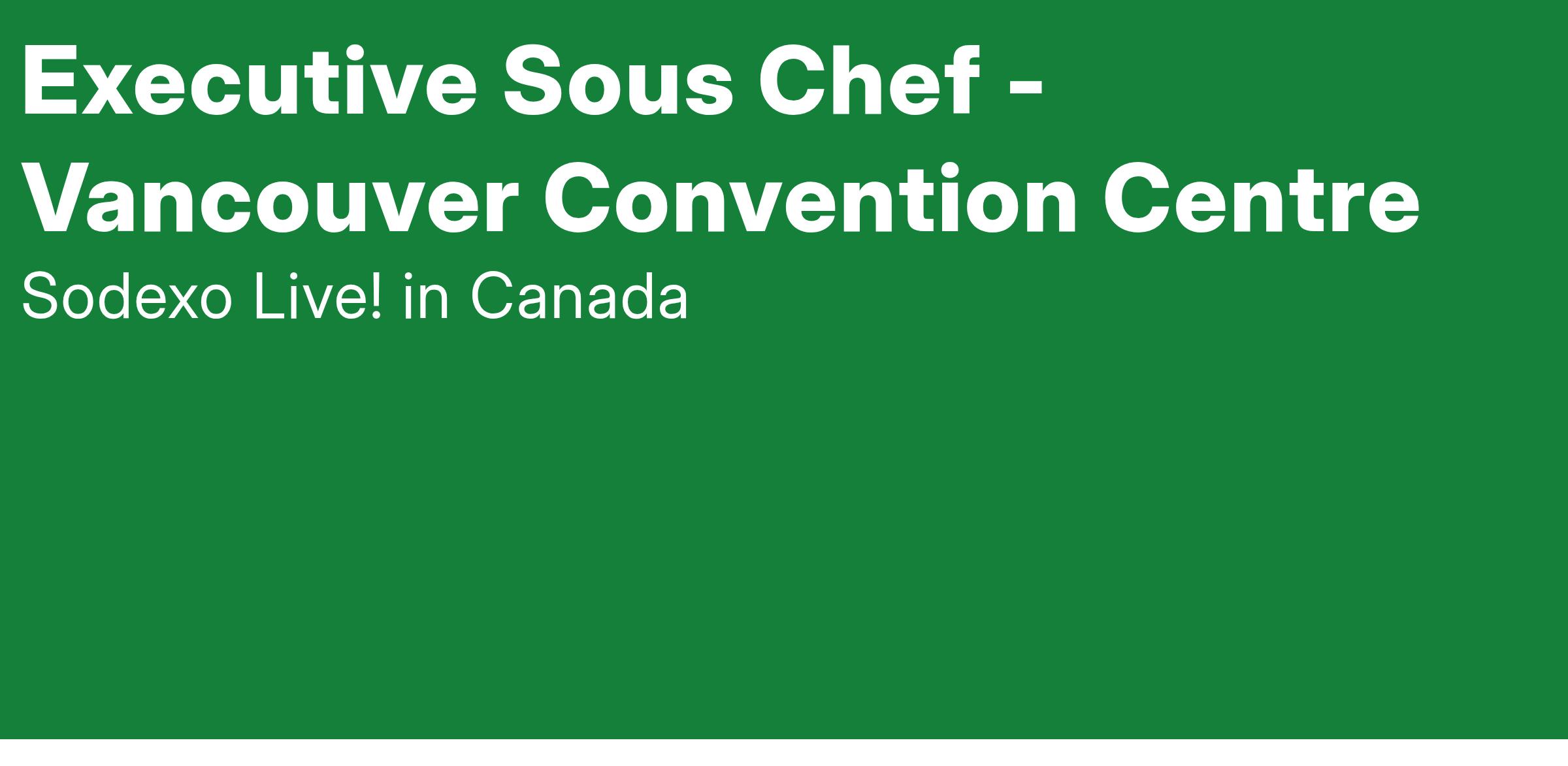 Location: We are seeking an Executive Sous Chef for our Vancouver Convention Centre operation in Vancouver, BC.